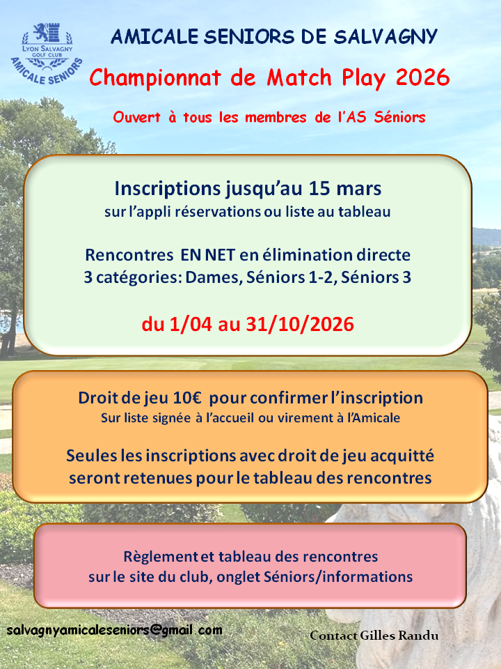 | du 1/4 au 31/10 | Championnat de Match Play Séniors | 10€ |