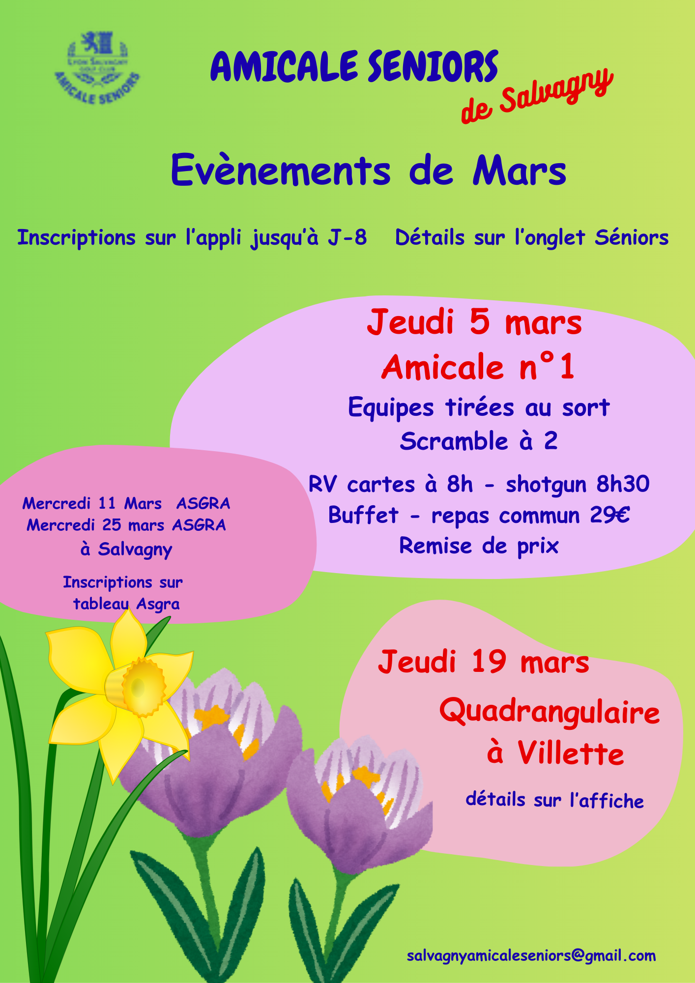 | Jeudi 19 /3 | Quadrangulaire à Villette | GF +repas 72€ | shotgun 9h | ||